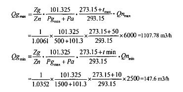 已知介質(zhì)的*低壓力、*高溫度和所需的*大標(biāo)準(zhǔn)狀況下的流量,計算*大工況下的流量: