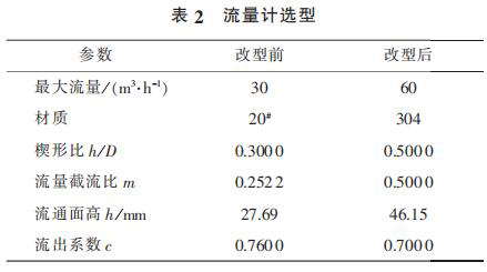 2) 為了解決泵出口流量計(jì)頻繁泄漏以及流量較低不能滿(mǎn)足工藝需求的問(wèn)題,更換新型流量計(jì),其相關(guān)參數(shù)見(jiàn)表 2。 更換后的流量計(jì)運(yùn)行 4 000 h后未出現(xiàn)泄漏現(xiàn)象。