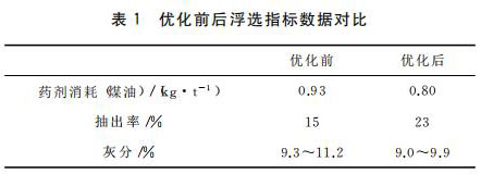 氣體轉(zhuǎn)子流量計制造過程優(yōu)化設(shè)計完成后,在原選煤廠進(jìn)行為期三個月的工業(yè)試驗,并對優(yōu)化前后的浮選關(guān)鍵指標(biāo)參數(shù)進(jìn)行統(tǒng)計和分析。應(yīng)用情況數(shù)據(jù)表明,經(jīng)過優(yōu)化設(shè)計的浮選自動控制系統(tǒng),各關(guān)鍵浮選指標(biāo)參數(shù)都有明顯提升,詳見表1
